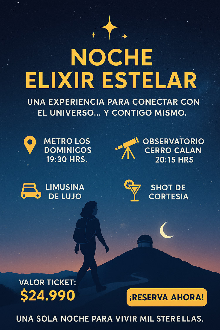 A las 20:15, llegaremos al Observatorio Cerro Calán, donde los telescopios nos abrirán una ventana al universo 🌙🔭